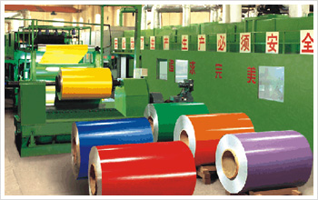 在連續(xù)機組上以冷軋帶鋼,鍍鋅帶鋼(電鍍鋅和熱鍍鋅)為基板,經過表面預處理(脫脂和化學處理),用輥涂的方法,涂上一層或多層液態(tài)涂料,經過烘烤和冷卻所得的板材即為涂層鋼板。由于涂層可以有各種不同的顏色,習慣上把涂層鋼板叫做彩色涂層鋼板。又由于涂層是在鋼板成型加工之前進行的,在國外這叫做預涂層鋼板。